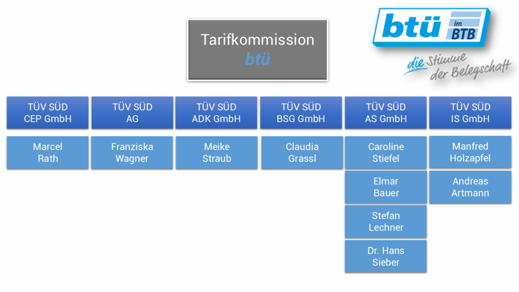 Die starke Vertretung der Mitglieder aus der TÜV SÜD Auto Service GmbH ist der Tatsache geschuldet, dass die TÜV SÜD Auto Service GmbH die größte Gesellschaft innerhalb von TÜV SÜD ist und dementsprechend eine große Anzahl von Mitgliedern hat. Um jedoch eine ausgewogene Tarifkommission zu erreichen, wo alle Interessen in etwa gleichartig vertreten werden, wurde schon zu Beginn der Wahl die Anzahl der Mitglieder der Tarifkommission über einen Vorstandsbeschluss aus der TÜV SÜD Auto Service GmbH auf 5 und die Mitglieder aus der TÜV SÜD Industrie Service GmbH auf 2 Personen begrenzt. Zudem war die Prämisse, dass mindestens 2 Frauen in der Tarifkommission vertreten sein mussten, was über die Wahl jetzt von 4 Frauen weit überschritten wurde.